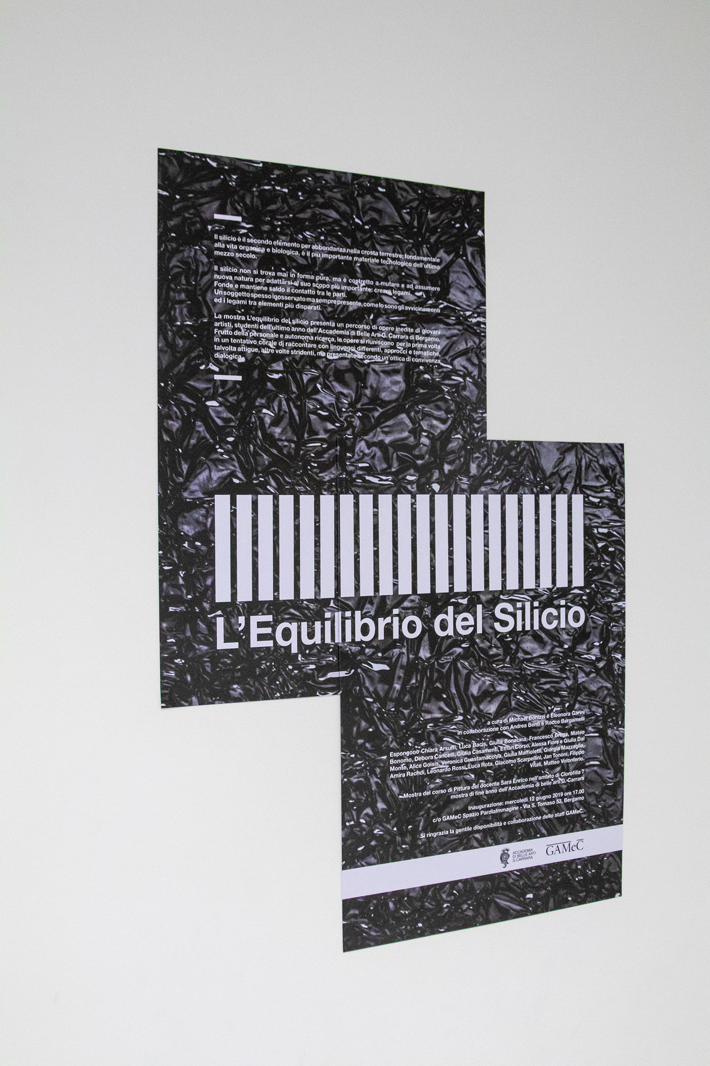 La mostra L’equilibrio del silicio presenta un percorso di opere inedite di giovani artisti, studenti dell’ultimo anno dell’Accademia di Belle Arti G. Carrara di Bergamo. Frutto della personale e autonoma ricerca, le opere si riuniscono per la prima volta in un tentativo corale di raccontare con linguaggi differenti, approcci e tematiche, talvolta attigue, altre volte stridenti, ma presentate secondo un’ottica di convivenza dialogica.